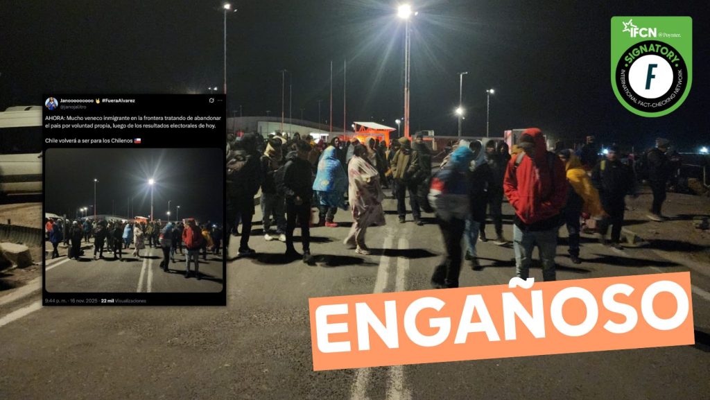 Una vez sabido que Jeannette Jara y José Antonio Kast disputarán la segunda vuelta de las elecciones presidenciales, se viralizó una imagen que supuestamente mostraría a un grupo de inmigrantes intentando abandonar el país producto de los resultados del balotaje. Fast Check calificó esto como #Engañoso, pues la fotografía corresponde a un grupo de inmigrantes en Colchane que buscaban volver a su respectivo país, pero ocurrió en 2023, por lo que no es posible que guarde relación con las elecciones celebradas este pasado domingo.