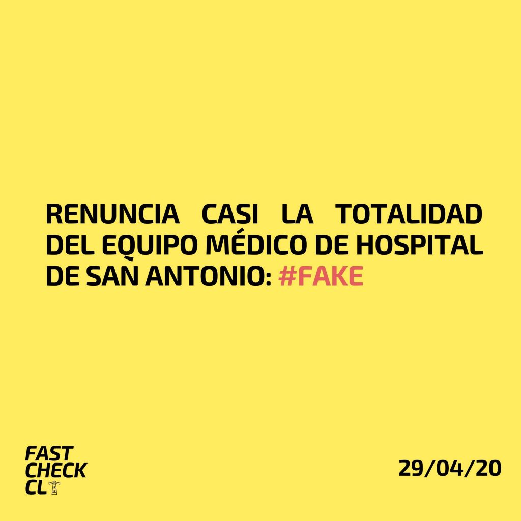 La diputada Camila Rojas del distrito 7 que contempla San Antonio, publicó en su redes sociales el comunicado y agregó “acá la aclaración del Hospital respecto de la FAKE NEWS DE LA TERCERA. Esta esa info oficial, no hay renuncias”.