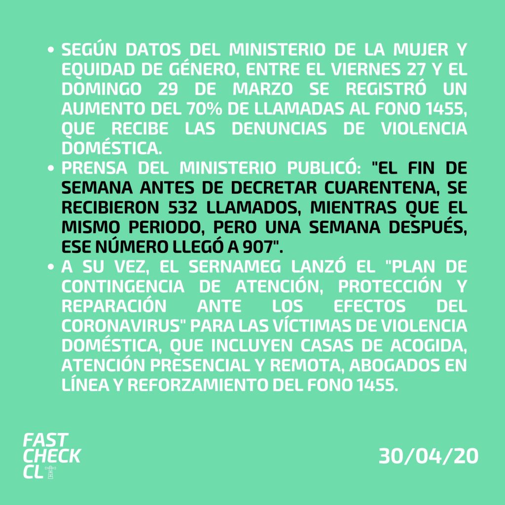 Según datos del Ministerio de la Mujer y Equidad de Género, entre el viernes 27 y el domingo 29 de marzo se registró un aumento del 70% de llamadas al fono 1455, que recibe las denuncias de violencia doméstica.