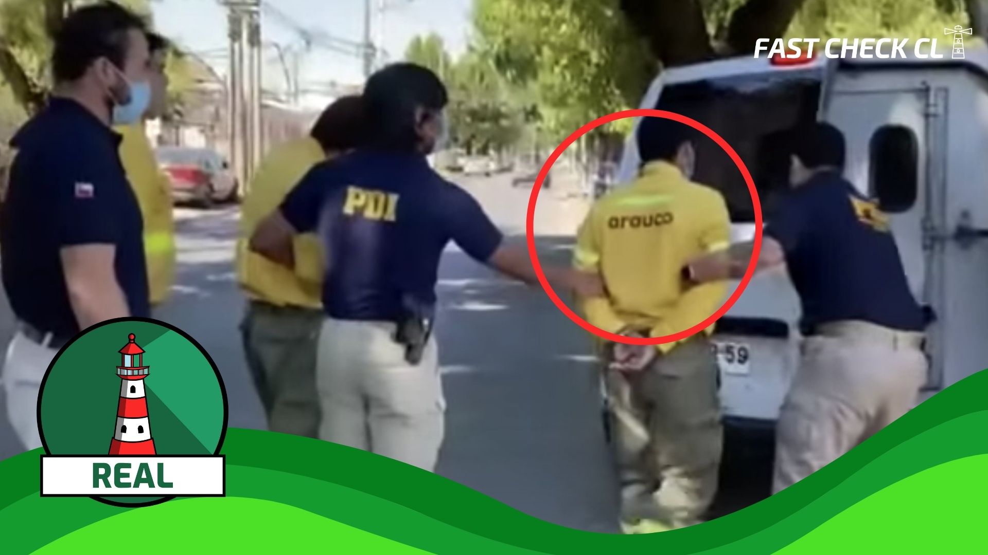 - Fast Check CL vio diversas imágenes de los imputados en incendios forestales durante 2020, que utilizaron vestimenta oficial de la forestal Arauco, cuyo dueño es la empresa del grupo Angelini.