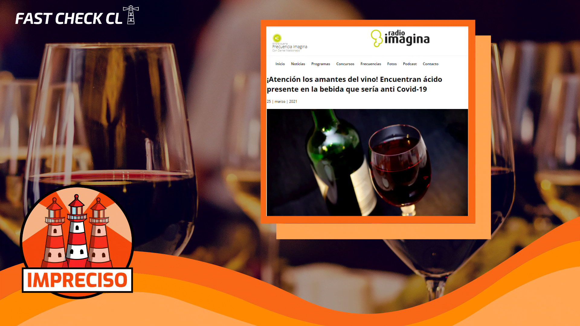 El 25 de marzo Radio Imagina realizó una publicación en su página web en la cual titula «¡Atención los amantes del vino! Encuentran ácido presente en la bebida que sería anti Covid-19». De acuerdo a lo publicado, esta noticia se basó en una investigación realizada en diciembre de 2020, por un equipo de científicos de Taiwán, China y Cincinnati, Estados Unidos, quienes descubrieron que «un ácido presente en el vino, actuaría como inhibidor del Covid-19. En esta investigación se demostró que el ácido tánico impidió que el Covid-19 entrara en las células». Fast Check CL verificó lo señalado por Radio Imagina.