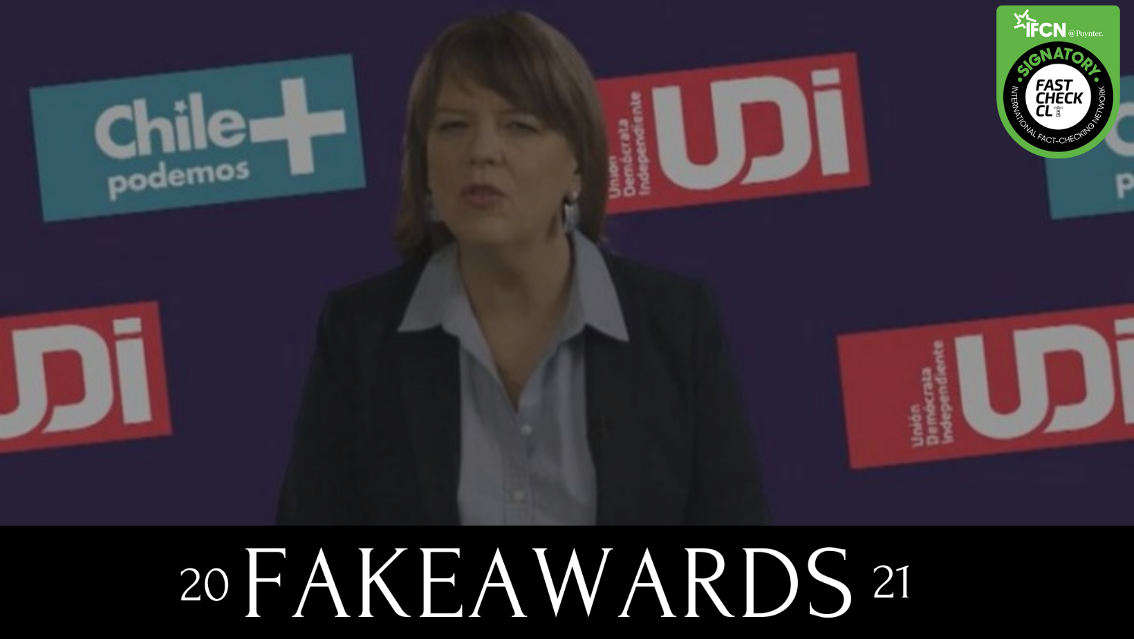 Tras una nueva votación del Fake Awards 2021, organizado por Fast Check CL, más de 1.500 personas participaron, dando como ganadora a la mentira más grande del 2021, a la frase dicha por la senadora de la Región de Los Ríos, Ena Von Baer, en la franja parlamentaria de la UDI, sobre cambiar la bandera, el himno nacional y el nombre del país en la Convención Constitucional.