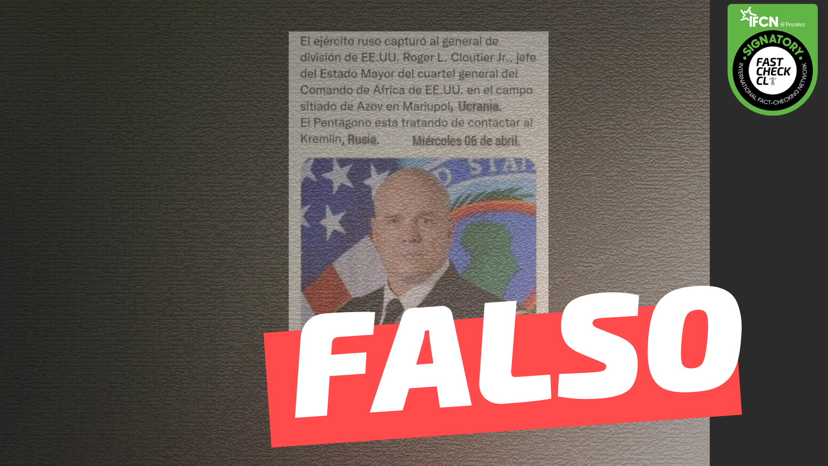 - En redes sociales se ha viralizado que Roger Cloutier, general del Comando de África en EE.UU. y general de división de EE.UU., fue capturado por el ejército ruso en Mariupol, en la guerra de Ucrania.