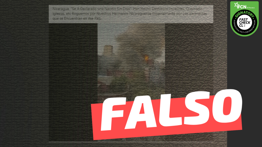 Circula un video que muestra una iglesia quemándose tras supuesta decisión del gobierno de Daniel Ortega. Si bien existe una crisis en las relaciones entre la iglesia y el régimen de Nicaragua, el registro en realidad tiene que ver con un siniestro que afectó a la Iglesia de la Veracruz en 2019 (Chile).
