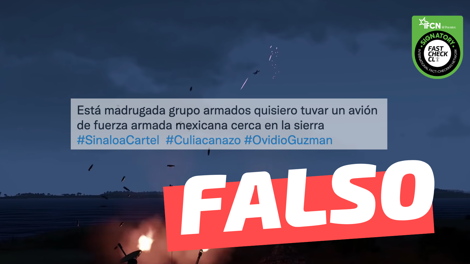 Debido a la detención de Ovidio Guzmán —hijo del «Chapo» Guzmán—, un video mostraría cómo «grupos armados» intentan derribar un avión de la fuerza aérea mexicana. Pero, lo que difunden es falso: se trata de fragmentos del videojuego «Arma 3».
