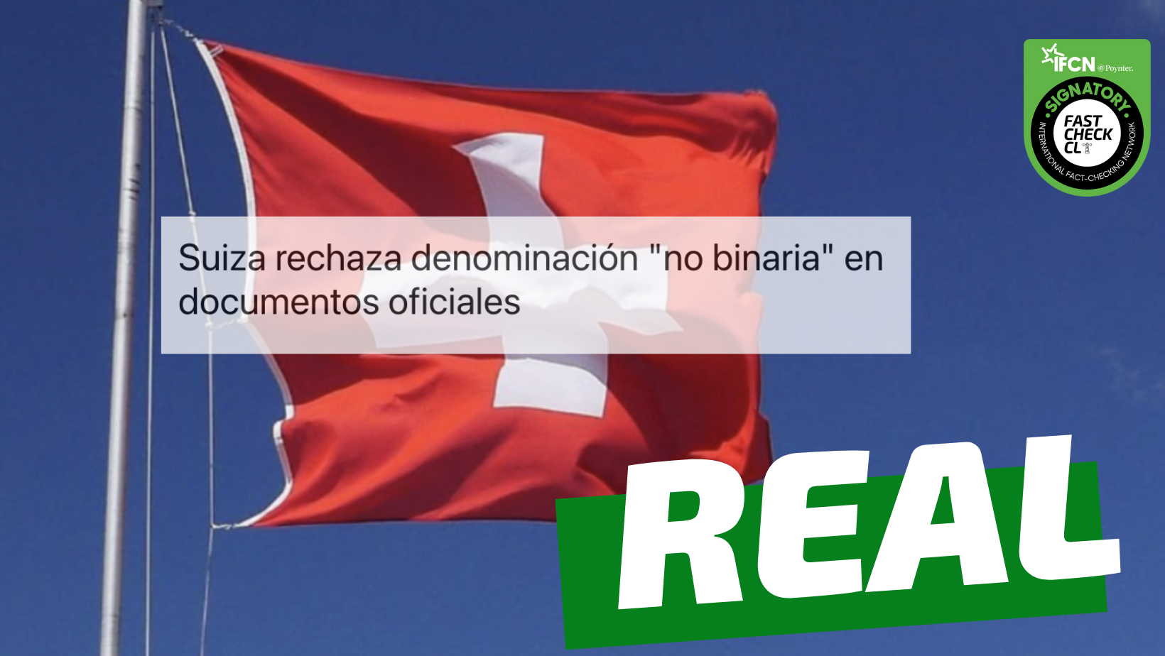 Fast Check CL califica como real esta información, ya que el Consejo Federal de Suiza rechazó la opción de incluir un tercer género, pues, según dicen, los requisitos sociales no se cumplen actualmente y habría que cambiar leyes.