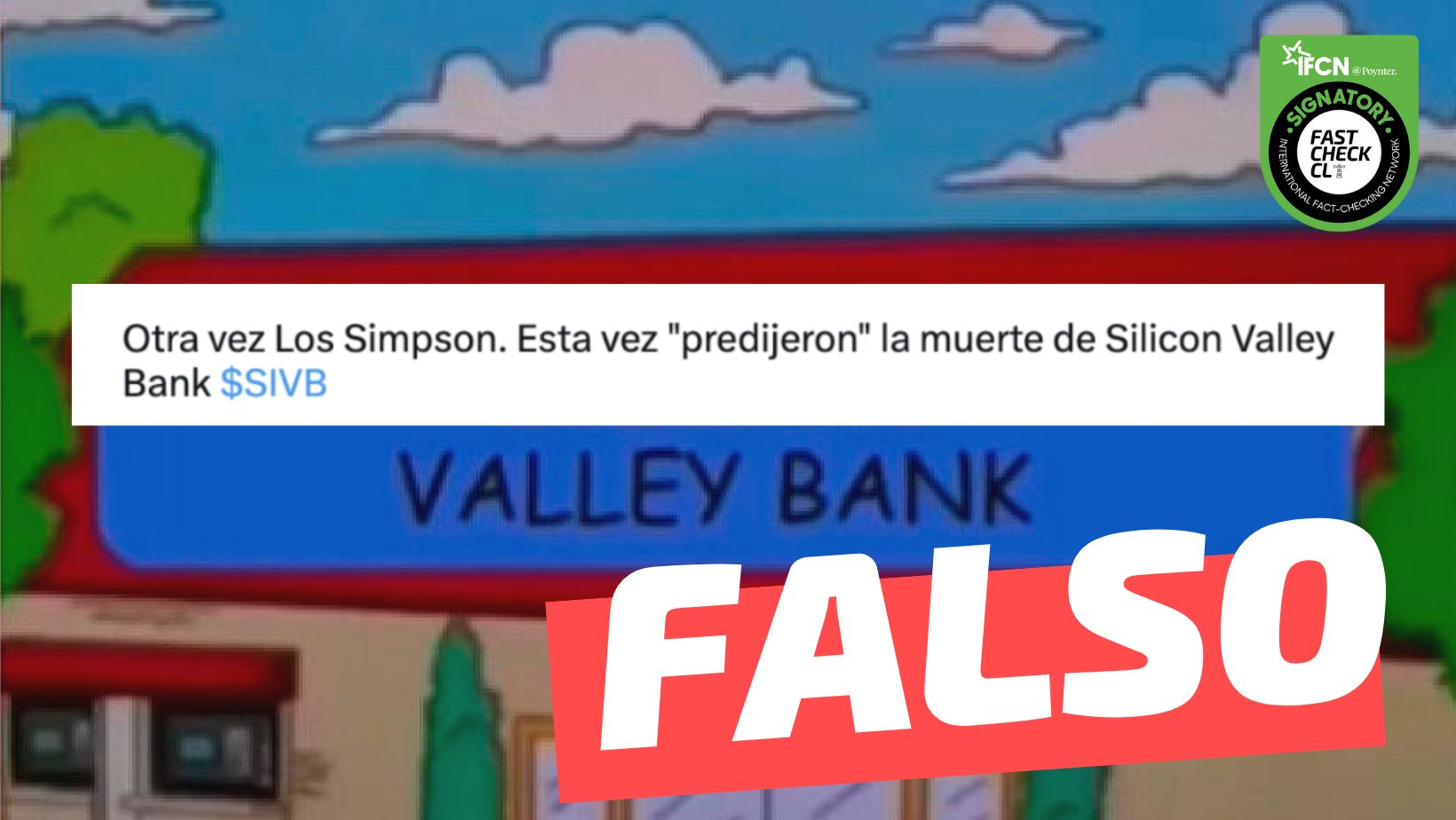 Así lo señalan varias afirmaciones en redes sociales. Usuarios de Facebook (1,2,3,4) y Twitter (1,2,3) adjuntan un extracto de un episodio en donde los personajes están dentro de un Silicon Valley Bank. En el registro se puede ver al personaje Bart Simpson realizar especulaciones negativas hacia el banco, lo que motiva a los clientes a retirar todo su dinero de la entidad.