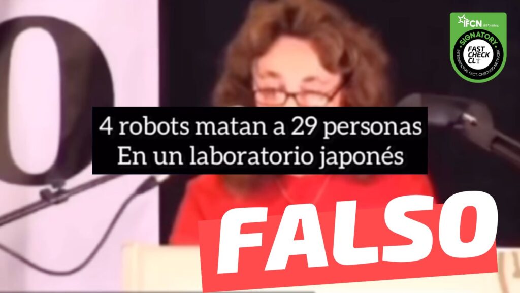 Fast Check CL declara falso lo difundido en redes sociales. No hay evidencia que pruebe la muerte de 29 personas por 4 robots en un laboratorio japonés. Además, diferentes medios de verificación alrededor del mundo desmintieron este contenido.