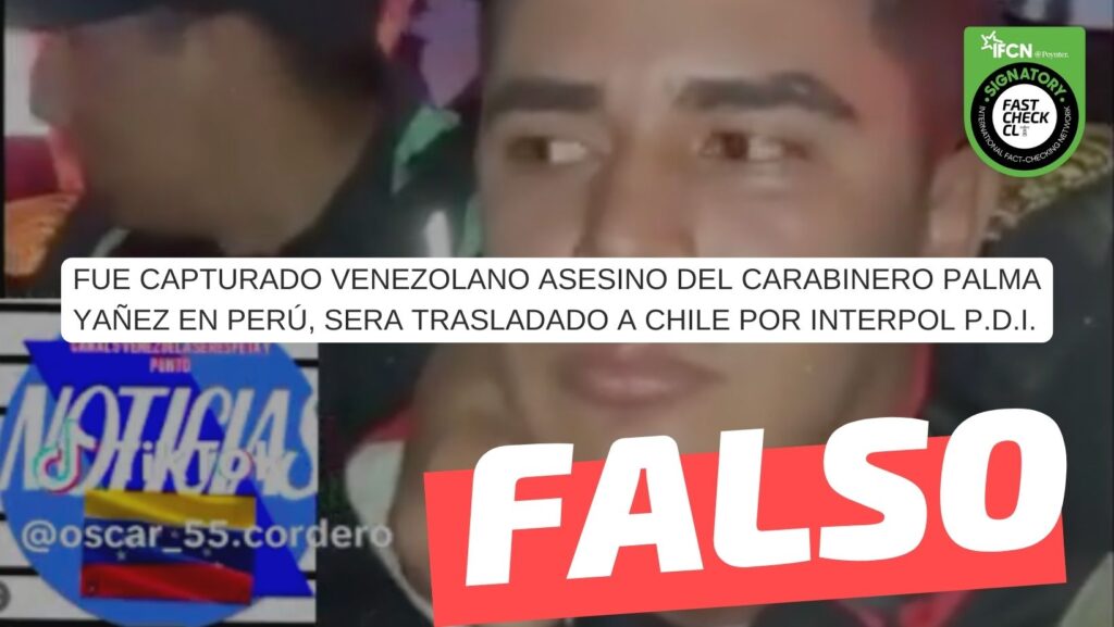 En Facebook y Tik Tok circula masivamente un video que muestra la supuesta captura del «venezolano asesino del carabinero Palma en Perú». Sin embargo, la persona del video no tiene ninguna relación con la muerte del funcionario policial. Fue desmentido por la Subsecretaría del Interior y Fiscalía.