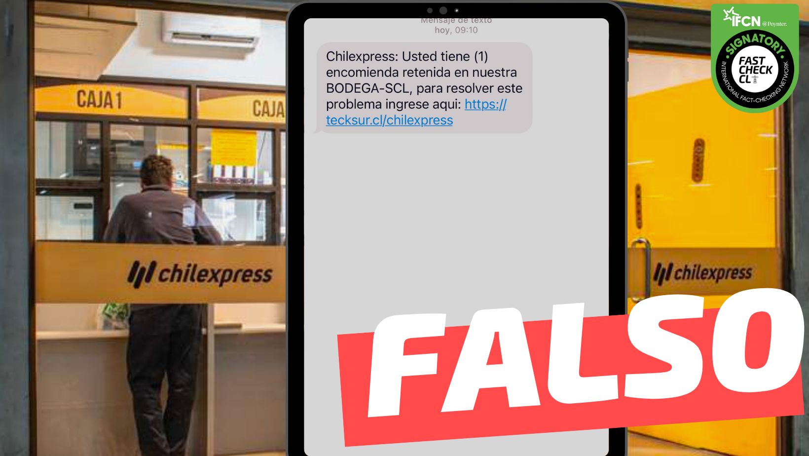 - En redes sociales se ha masificado un mensaje de texto que describe: «Chilexpress: Usted tiene (1) encomienda retenida en nuestra Bodega-SCL, para resolver este problema ingrese aquí».