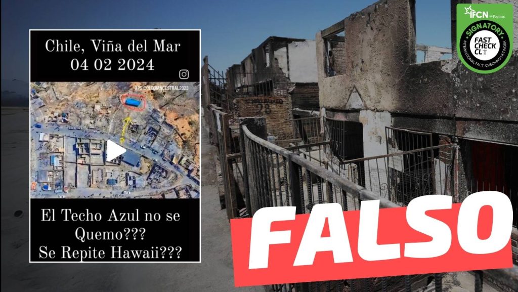 Fast Check CL califica la información viralizada como falsa. La foto que se ha difundido no es de los siniestros recientes, circula desde diciembre de 2022. Además, imágenes que muestran el antes y después del incendio en Viña del Mar desmienten la teoría, pues sí se quemaron casas azules.