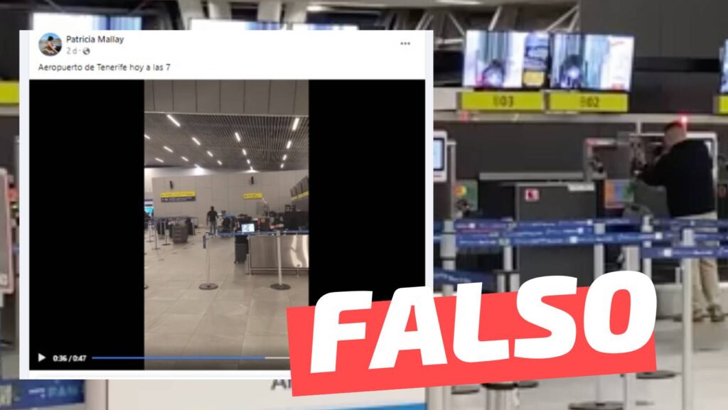 «Esto pasó hoy 1 Septiembre en el aeropuerto de Tenerife», se lee en algunas publicaciones compartidas en Facebook (1,2,3,4) y X (1,2,3,4,5,6). El video lo protagoniza un hombre que comienza a golpear con un martillo las pantallas del aeropuerto furioso.