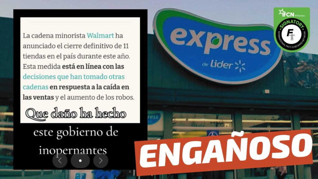 En redes sociales se está compartiendo que la cadena de supermercados Walmart cerrará 11 tiendas en el país, correlacionándolo a la inoperancia del gobierno. Fast Check califica este contenido como engañoso, ya que las 11 tiendas que cerrarán, lo harán en Estados Unidos, no en Chile, por ende, se utilizó esta información de forma descontextualizada para engañar.