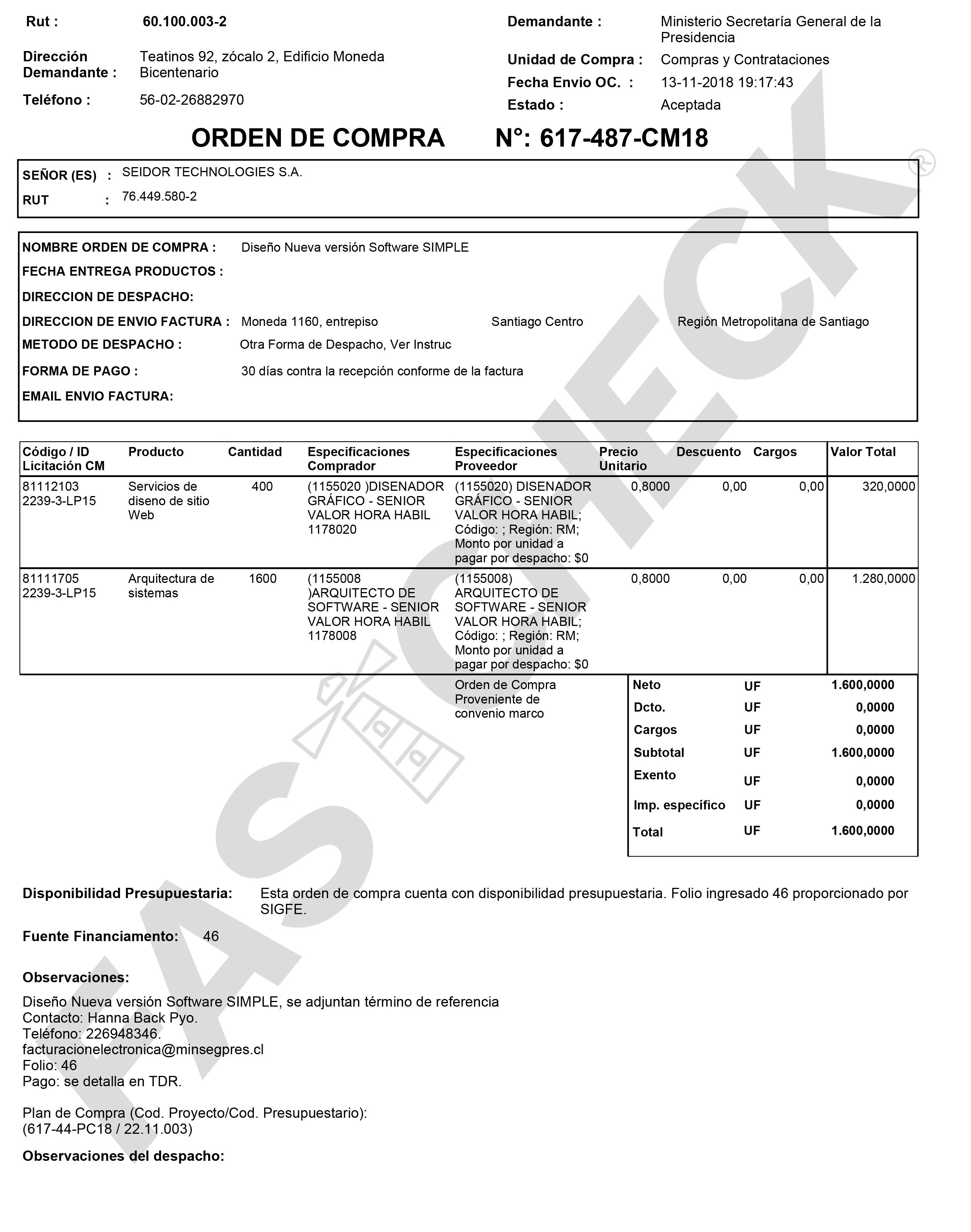 En total, Gobierno Digital pagó 1.700,7 UF (unos $45 millones al cambio de la época) para adquirir 467 horas hombre de un consultor senior y 600 horas hombre de un jefe de proyecto senior.