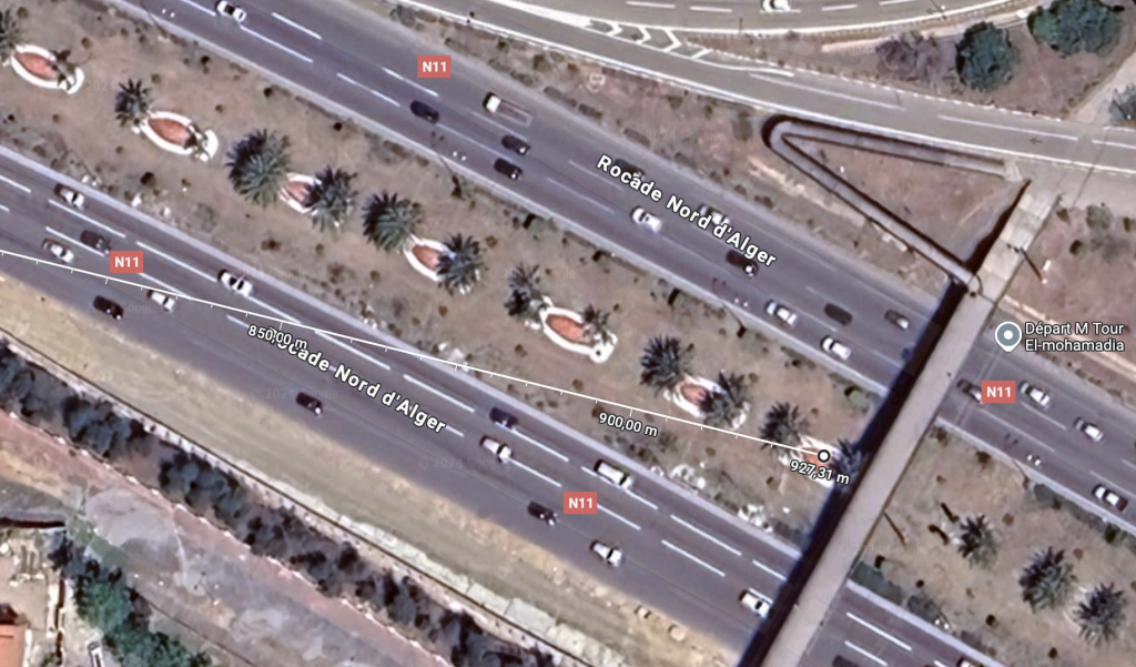 Al poner mayor atención a los detalles del video se identificó que se ven unas banderas que podrían coincidir con la argelina, pero debido a la calidad del video, no se puede asegurar con certeza. Sin embargo, hay otros elementos que pueden entregar pistas del lugar: un edificio en el fondo, un cartel publicitario y unas figuras entre los árboles al costado de la carretera.