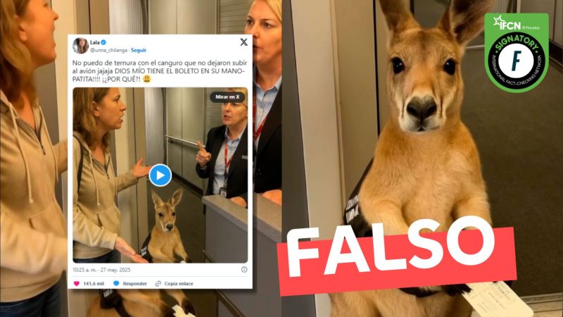 Se viraliz贸 masivamente el video de un canguro de ‘apoyo emocional’ al que se le impide subir a un avi贸n junto a su due帽a. Sin embargo, el video se hizo con inteligencia artificial, por lo que es Fast Check lo calific贸 como #Falso.