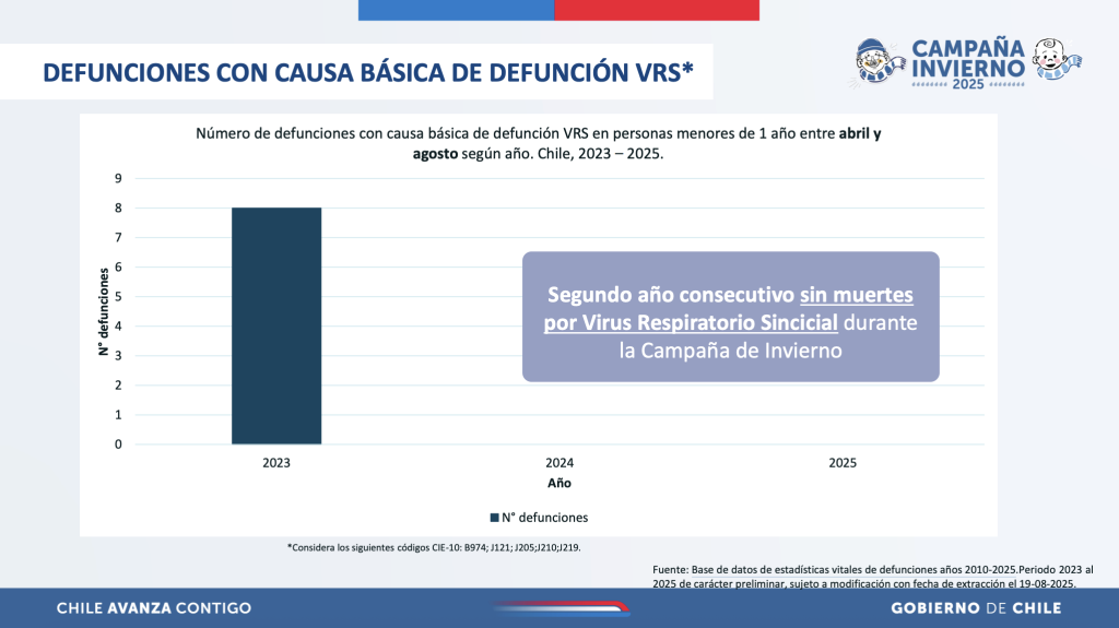 En el informe «Cierre Campaña de Invierno» se expone que el 2023 hubo ocho defunciones por virus sincicial en menores de un año, pero que a partir de 2024 no se registraron más.