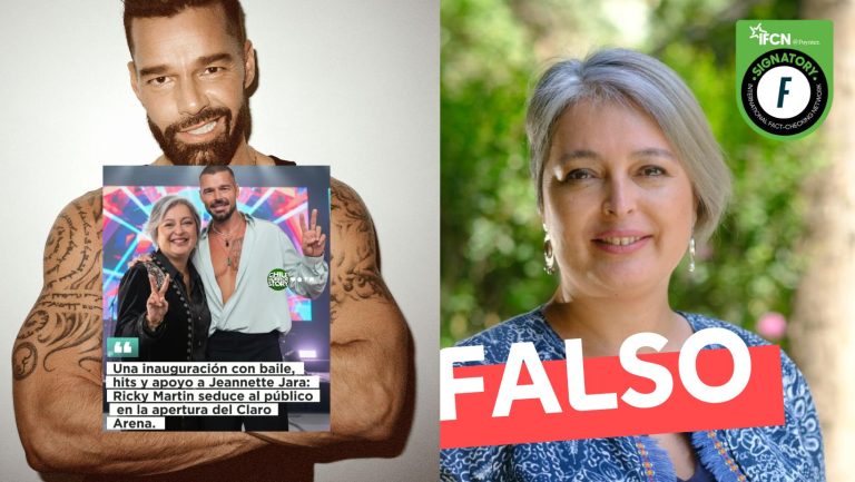 Se difundió en redes que el cantante Ricky Martin se reunió con la candidata presidencial Jeannette Jara para prestarle su apoyo, en el marco de sus conciertos en el Claro Arena durante este fin de semana. Se calificó el contenido de #Falso: no existe ningún registro de que el intérprete haya respaldado a la carta oficialista. Desde el comando de Jara desmintieron la información.