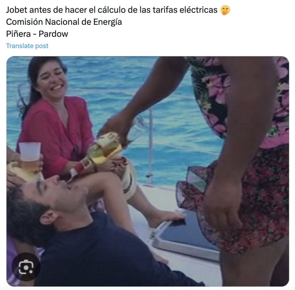 Uno de estos virales acumula 23 mil visualizaciones y casi 530 reposteos. Es acompañado del texto: «Jobet antes de hacer el cálculo de las tarifas eléctricas», aludiendo a que la persona en la imagen es él.