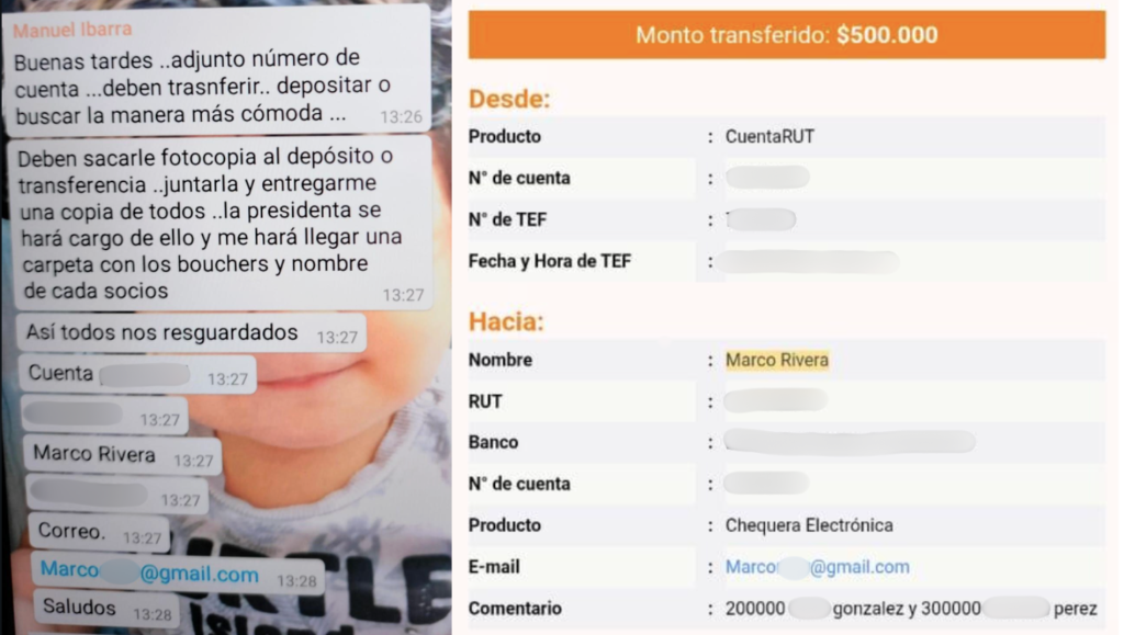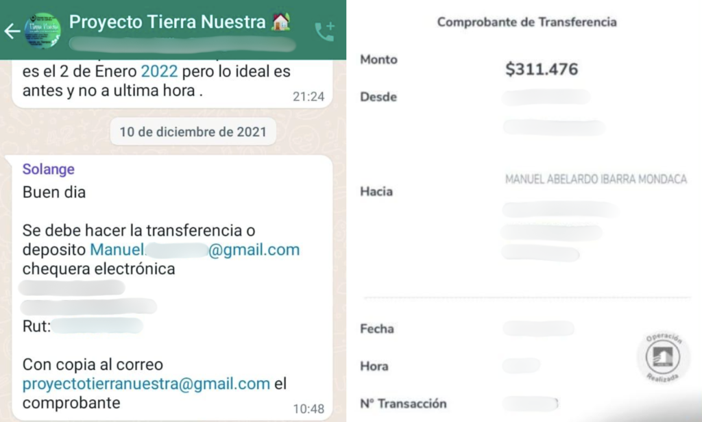 En otros casos, la acción habría sido aún más directa. En el proyecto Barranca, del comité Tierra Nuestra, Solange Palma —cercana a Ibarra, según la carta de denuncia— informó que las transferencias debían realizarse directamente a la cuenta personal del actual edil.