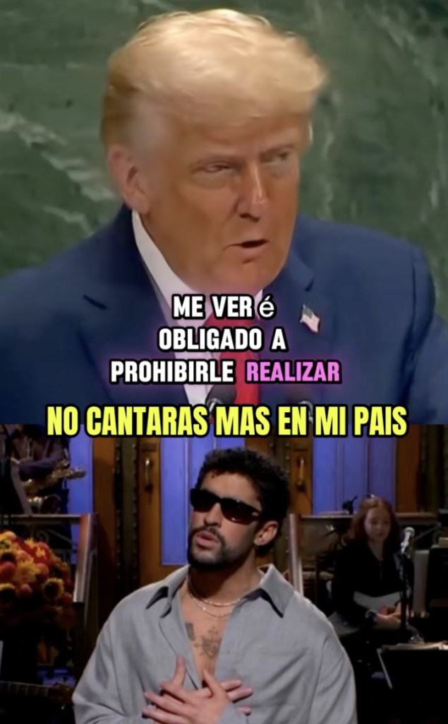 Fast Check CL califica el contenido como #Falso. Si bien Donald Trump se ha mostrado en contra de la presentación de Bad Bunny en el Super Bowl, no ha anunciado ninguna prohibición de sus conciertos. Los videos que circulan, tanto del presidente estadounidense como del artista puertorriqueño, fueron generados mediante inteligencia artificial.