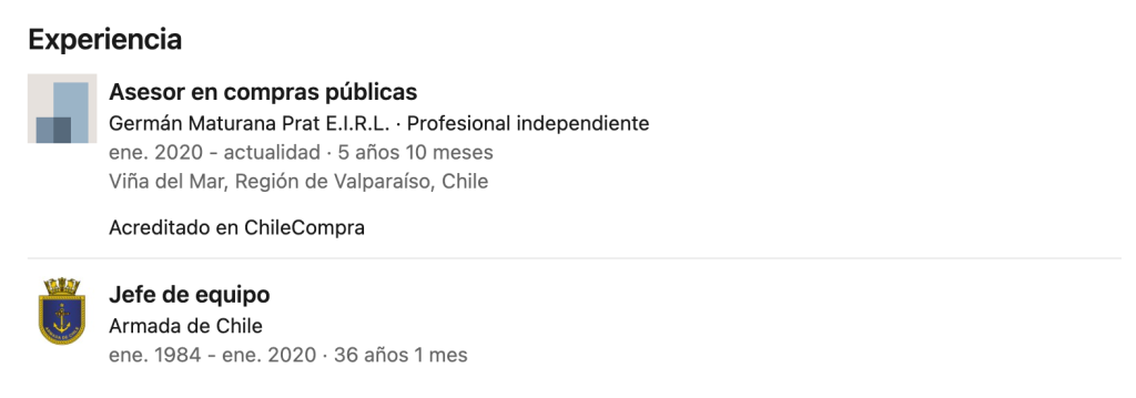 Fast Check CL además constató que la empresa de Germán Maturana Prat no ha suscrito contratos con ninguna otra entidad estatal. Desde su creación, solo ha prestado servicios a la Armada, institución en la que su titular desarrolló una carrera profesional.