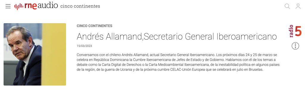 - RTVE Play: “Conversatorios en Casa de América: Andrés Allamand, Secretario General Iberoamericano”