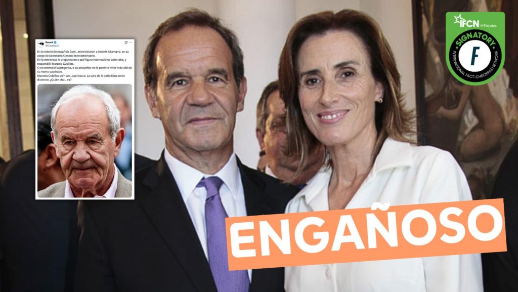 Fast Check CL califica el contenido como #Engañoso. Si bien es correcto que el exministro Allamand respondió que ha «aprendido mucho» de Marcela Cubillos —su esposa—, la pregunta no apuntaba a figuras internacionales que admirara, sino a personas que lo habían marcado personalmente. Además, el contenido viral tergiversa el contexto: la entrevista fue realizada por un periodista hombre, y no por una mujer.