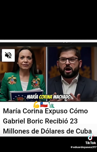 Ahora, en los recientes días, se viralizó en TikTok (1,2) que Corina Machado «expuso cómo Gabriel Boric recibió 23 millones de dólares de Cuba».