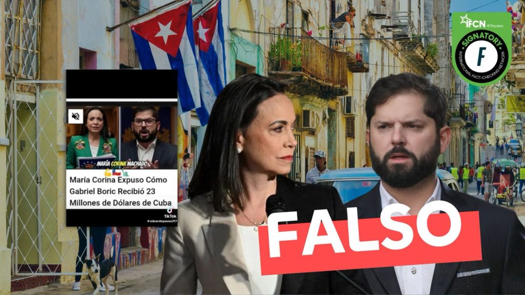 Fast Check califica el contenido como #Falso. Ningún registro, tanto de parte de medios venezolanos como chilenos, demuestra que María Corina Machado haya ‘expuesto’ un supuesto pago millonario desde Cuba a Gabriel Boric. Asimismo, tampoco existen reportes que vinculen al mandatario con una suma de dinero como la que se comparte.