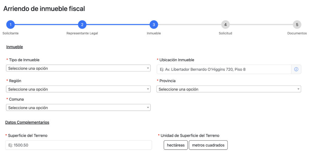 Fast Check CL verificó que, en efecto, cualquier persona puede presentar una solicitud de arriendo. Sin embargo, el formulario disponible en línea no ofrece un listado de propiedades disponibles, sino que exige que el solicitante indique la dirección exacta y la superficie del inmueble que desea arrendar.