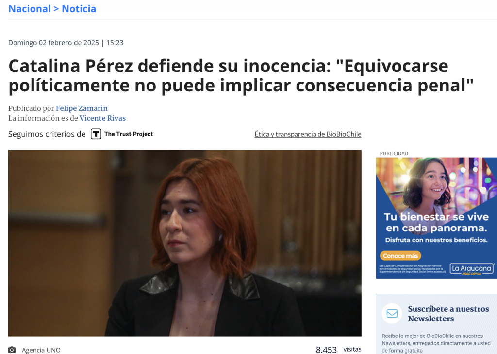 La página de Pérez, cabe mencionar, se mantiene inactiva desde enero de 2025, cuando la parlamentaria adjuntó un informe de la PDI que la exculparía de su involucramiento en la obtención de convenios irregulares con la fundación Democracia Viva. Esto en respuesta a un reportaje de Mega, que revelaba supuestos depósitos en efectivo por $7 millones en su cuenta corriente, los cuales no estarían justificados acorde a la misma policía de investigaciones.