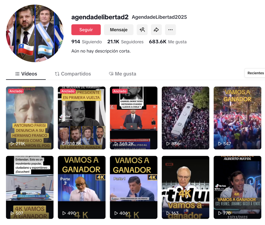 La imagen que supuestamente da un amplio respaldo a Johannes Kaiser no es nueva y lleva meses circulando. Una búsqueda avanzada por Google Lens sitúa su publicación más antigua al 13 de agosto de 2025, en la cuenta de Tik Tok @agendadelibertad2, que sube contenido ligado a la campaña del libertario.