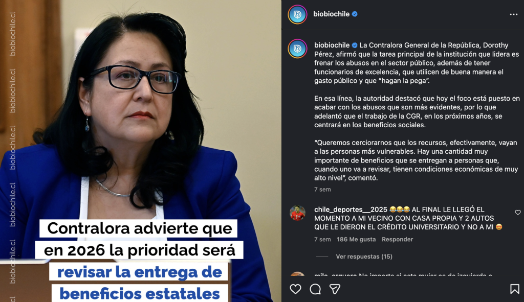 - Nota de Radio Biobío: Contralora advierte que en 2026 la prioridad será revisar la entrega de beneficios estatales