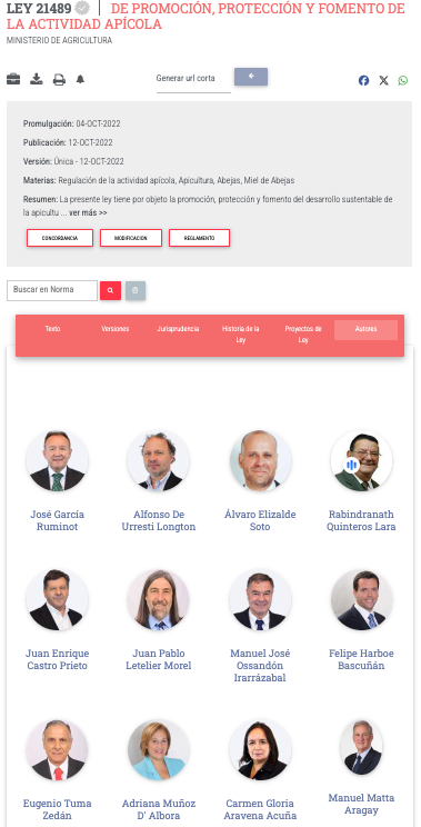 Como se aprecia en las dos capturas a continuación, en la Ley de protección y fomento de la actividad apícola, el candidato republicano aparece —tanto con nombre como con fotografía— entre los autores, así como también en la historia de la ley.