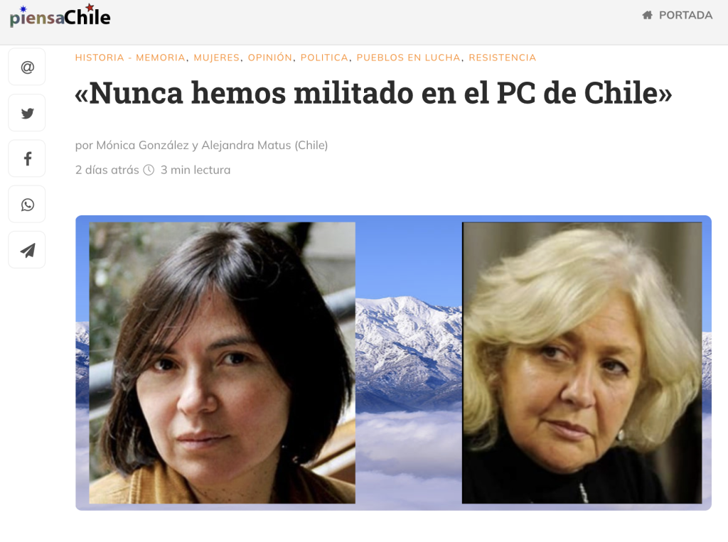 - Piensa Prensa: “MONICA GONZÁLEZ Y ALEJANDRA MATTUS «Nunca hemos militado en el PC de Chile»”