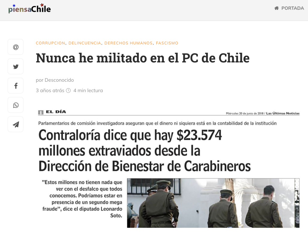 Se contactó al medio PiensaChile a través de su correo electrónico y mensajería de Facebook. Sin embargo, al cierre de esta edición tampoco hubo respuesta.