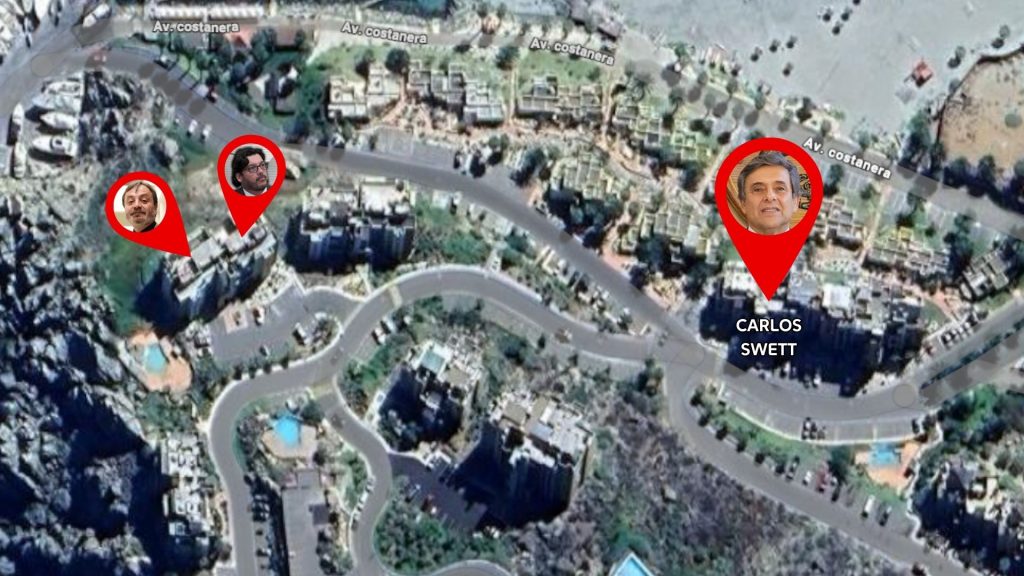 A escasa distancia del Edificio Cumbres III, Carlos Swett Muñoz —actual conservador de Bienes Raíces de Concón— contó con una propiedad en el Edificio Plaza, ubicado a aproximadamente 180 metros del inmueble de Villalobos Pellegrini, lugar donde conoció a Vivanco y Migueles. No obstante, la revisión de la Declaración de Intereses y Patrimonio permitió constatar que, con posterioridad a marzo de 2022, Swett ya no registra esa propiedad a su nombre.