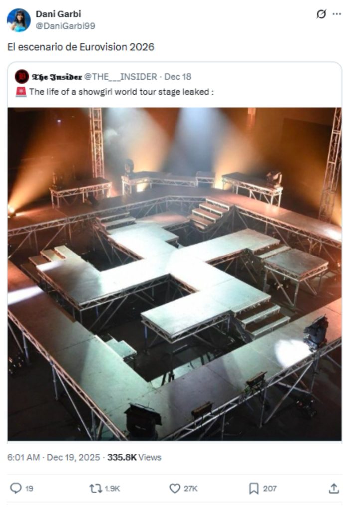 Fast Check CL califica el contenido como #Falso. La imagen fue difundida por una cuenta que se identifica abiertamente como un perfil desinformante y presenta altas probabilidades de haber sido generada mediante inteligencia artificial. Además, los canales oficiales de Eurovision informaron previamente cómo será el escenario del evento, el cual no corresponde a la figura representada en la imagen viral.