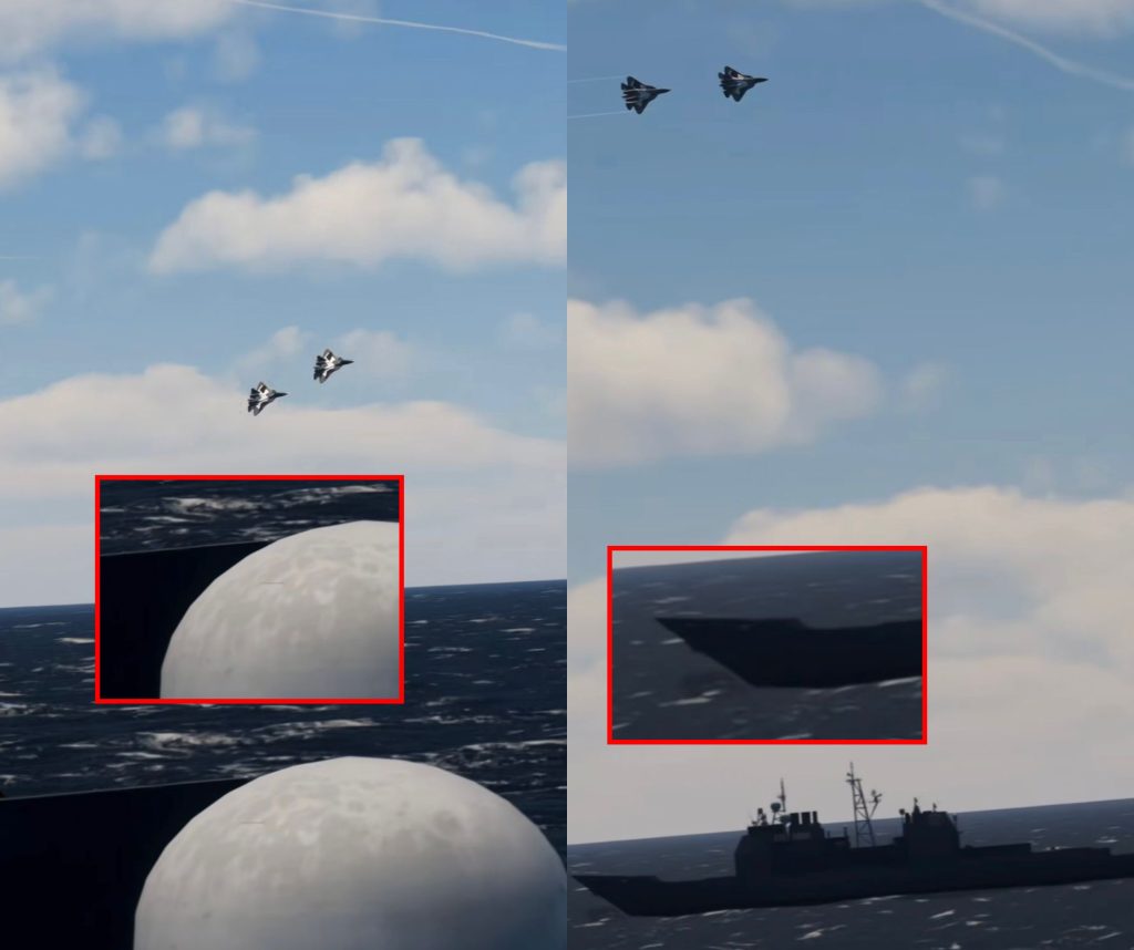 Además, el video presenta edición de audio y modificaciones propias de un entorno de videojuego, destinadas a simular un movimiento natural de cámara en mano, conocido como «display camera shake». A ello se suman inconsistencias gráficas visibles en la representación del mar y en las texturas del supuesto portaaviones que aparece en el registro.