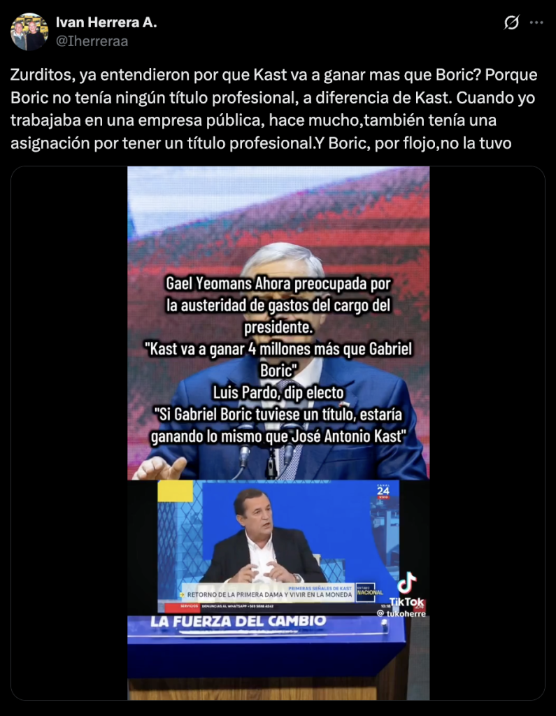 A través de X también se compartió que el motivo del aumento en el sueldo de Kast una vez que asuma como presidente se debe a tener su respectivo título.