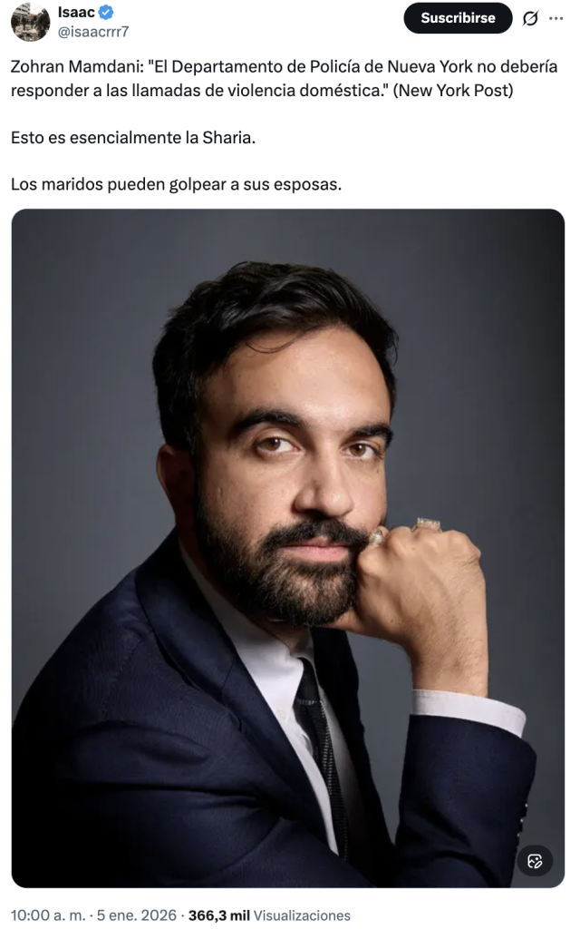 - Nota de Newtral: “Qué sabemos de las declaraciones de Mamdani sobre “violencia doméstica”: no son actuales y están sacadas de contexto”