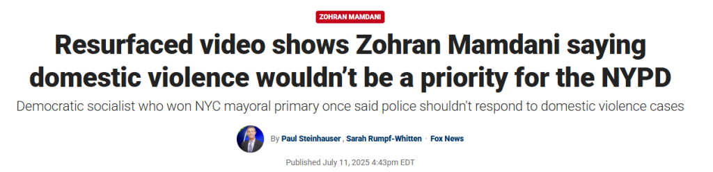 Fox News ahondó en ellas en una nota publicada el 11 de julio de 2025. «El socialista democrático que ganó la primaria alcaldicia de Nueva York una vez dijo que la policía no debería responder a los casos de violencia doméstica», indicó el portal conservador.