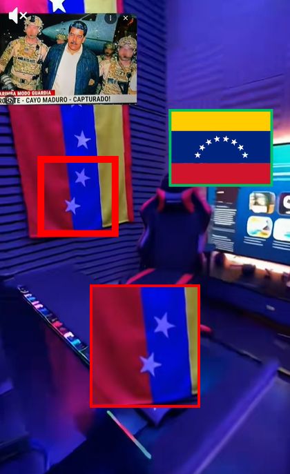 Al final del video, el supuesto autor ingresa a una habitación ‘gamer’ de propiedad de Nicolás Maduro. En dicha secuencia, se puede ver una bandera de Venezuela colgada en la pared. La representación en tela contiene ocho estrellas, pero una de las estrellas se presenta fuera de su posición original.