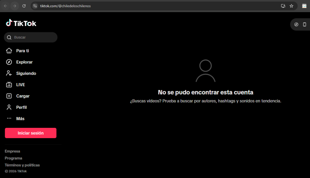 En todas las iteraciones del contenido viral, una marca de agua revela que la cuenta de origen es @chiledeloschilenos en TikTok. Al buscar la mencionada en la aplicación se corrobora que ya no existe, aunque hay constancia de que compartió desinformación relativa a Eduardo Frei previamente.