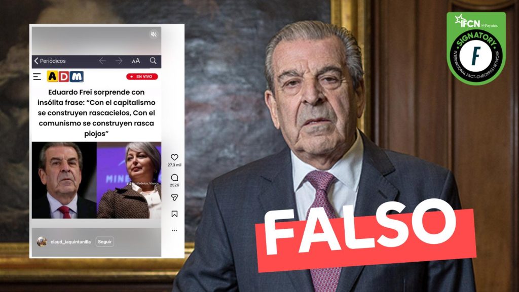 - Chequeo de Fast Check: “(Imagen) “Eduardo Frei responde: ‘A esto nos estamos enfrentando, a una ideología que no tolera a los que piensan distinto, que persiguen y censuran’”: #Falso”