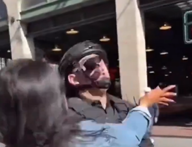 En el instante en que la mujer golpea al funcionario de la ICE, se advierte la deformación de su rostro y de los lentes que portaba durante el fragmento.
