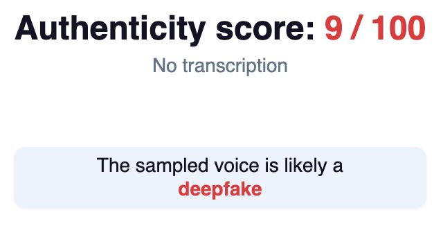 Junto a esto, se analizó el audio del video en su conjunto: gritos de la mujer, palabras del agente, sonidos de fondo y el impacto del golpe. La herramienta Hiya arrojó un 9% de probabilidades de que el audio sea real.