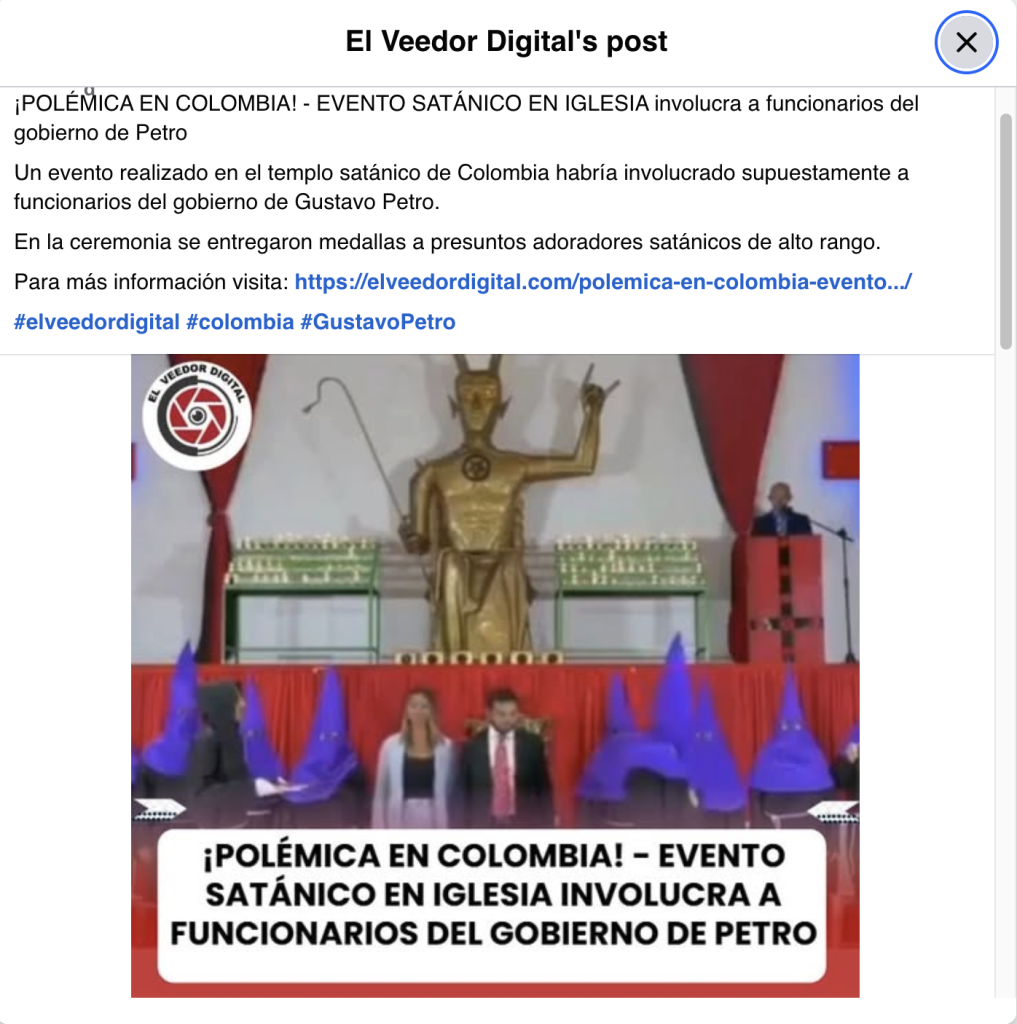 Se viralizó un registro que mostraría a funcionarios del gobierno de Colombia participando en lo que sería una ceremonia en un templo satánico (1,2,3). El contenido acumula más de 500 mil visualizaciones en X y 13 mil reacciones en Facebook.