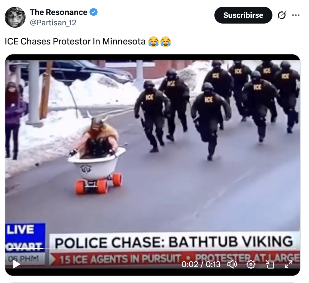 • Nota de Newtral: “El vídeo de agentes del ICE persiguiendo a un hombre disfrazado de vikingo en una bañera está creado con IA”